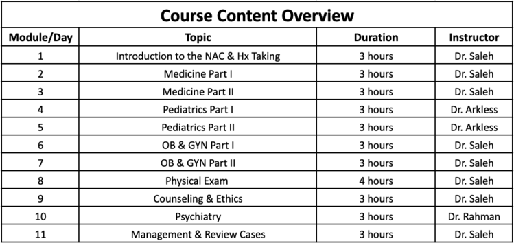 This pre-recorded NAC OSCE program provides structured, comprehensive coverage of all core exam topics. Each module reflects previously delivered live sessions and is designed to allow flexible, self-paced learning while maintaining a clear study roadmap.